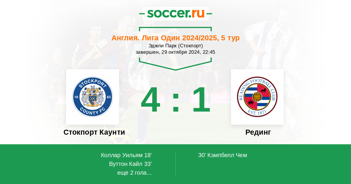 18' (1:0) Коллар Уильям (14) (Оньянго Тайлер (24))