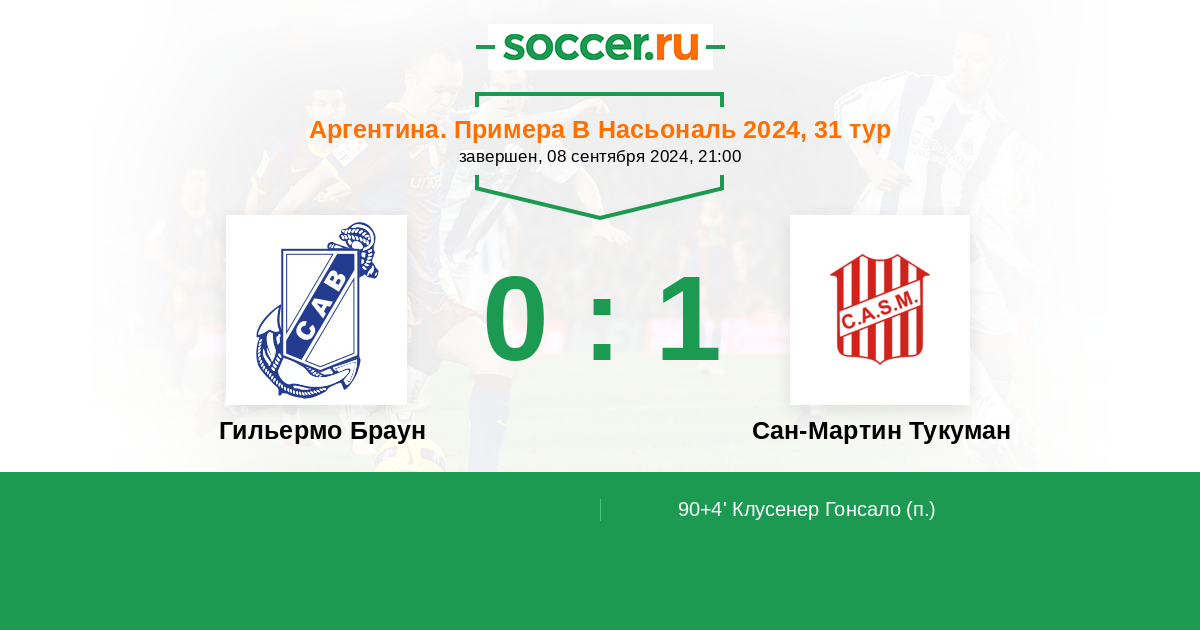 Протокол матча Гильермо Браун против Сан-Мартин Тукуман