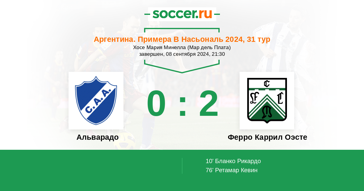 Протокол матча Альварадо против Ферро Каррил Оэсте
