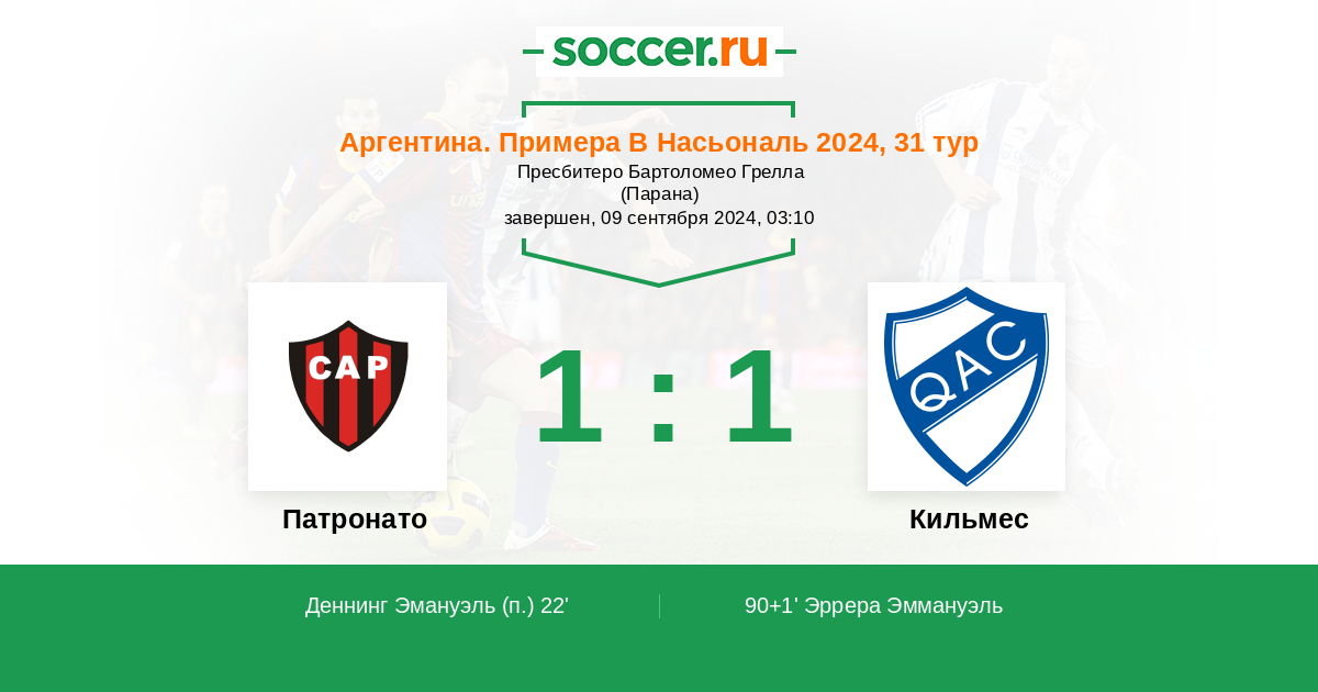 Протокол матча Патронато против Кильмес