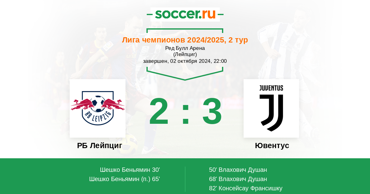 Протокол матча РБ Лейпциг против Ювентус