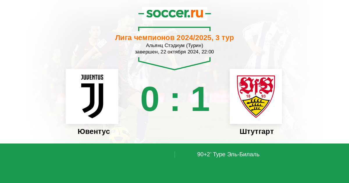 Протокол матча Ювентус против Штутгарт