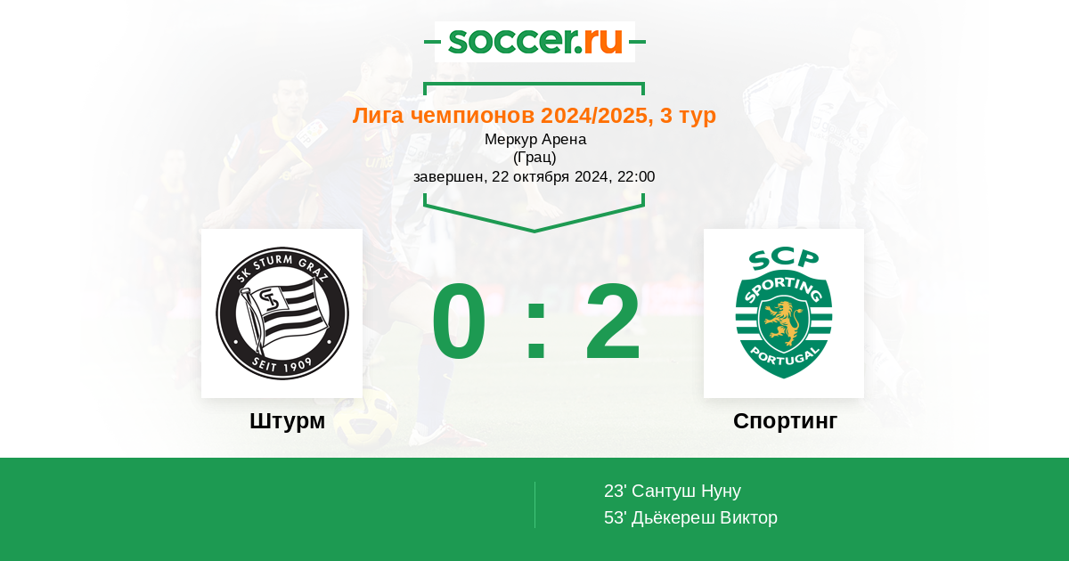 Протокол матча Штурм против Спортинг