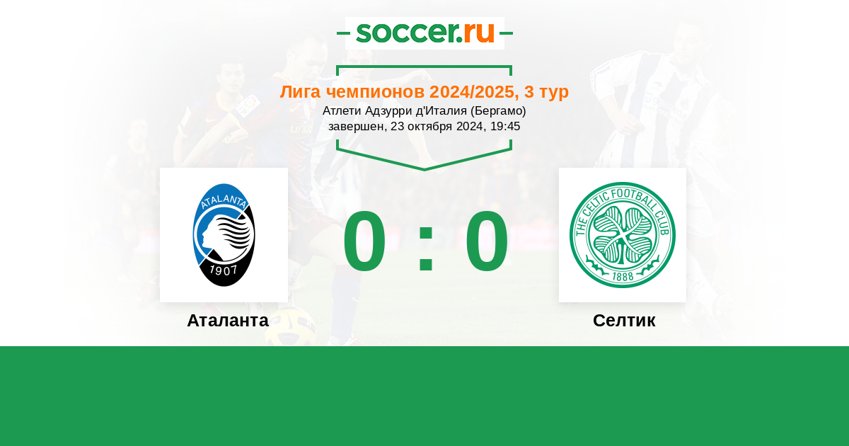 Протокол матча Аталанта против Селтик