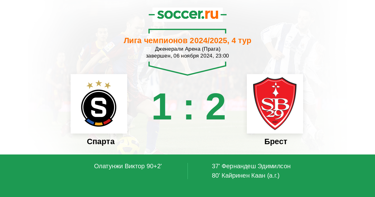 Протокол матча Спарта против Брест