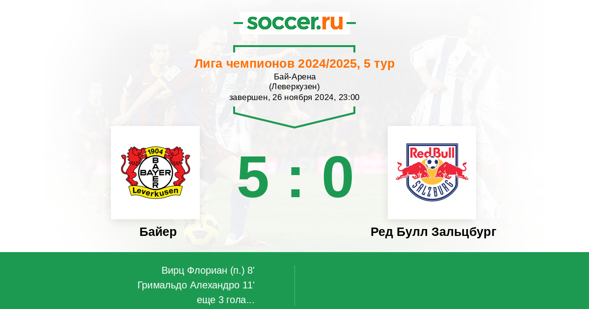Протокол матча Байер против Ред Булл Зальцбург