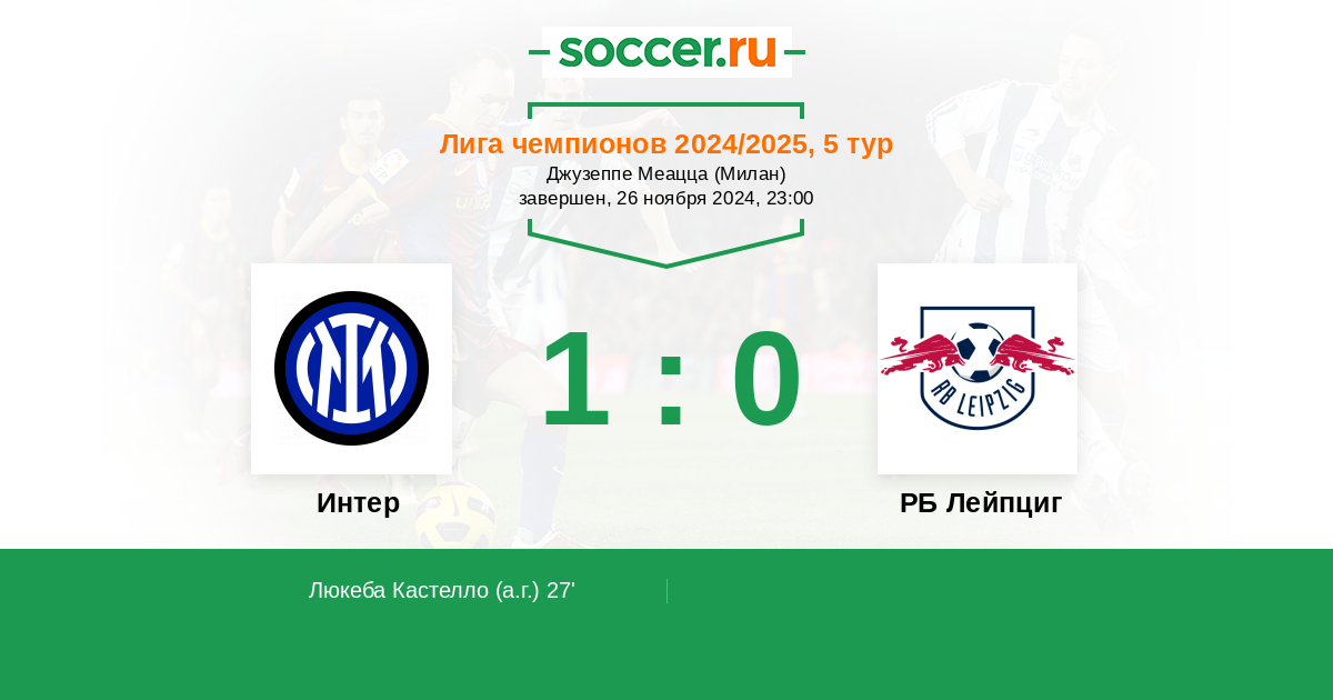 По игре фаворит естественно Интер, нет сомнений что хозяева победят, но гол от Лейпцига взять стоит!!!!