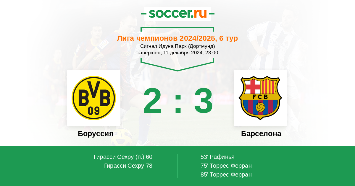 Ожидается результативная игра, с акцентом на атаку обеих команд. Прогнозы предполагают общий тотал больше 3 мячей. Шансы "Барселоны" на победу выше благодаря их качеству состава, но "Боруссия" способна удивить