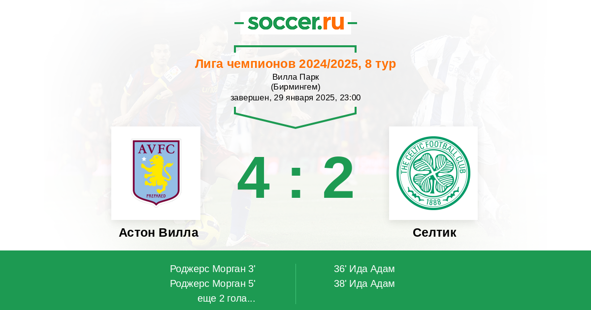 Протокол матча Астон Вилла против Селтик