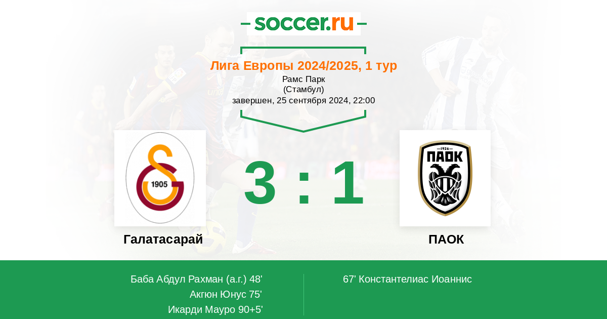 Протокол матча Галатасарай против ПАОК
