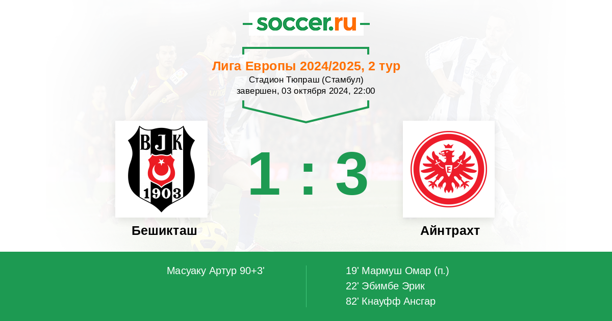 Протокол матча Бешикташ против Айнтрахт