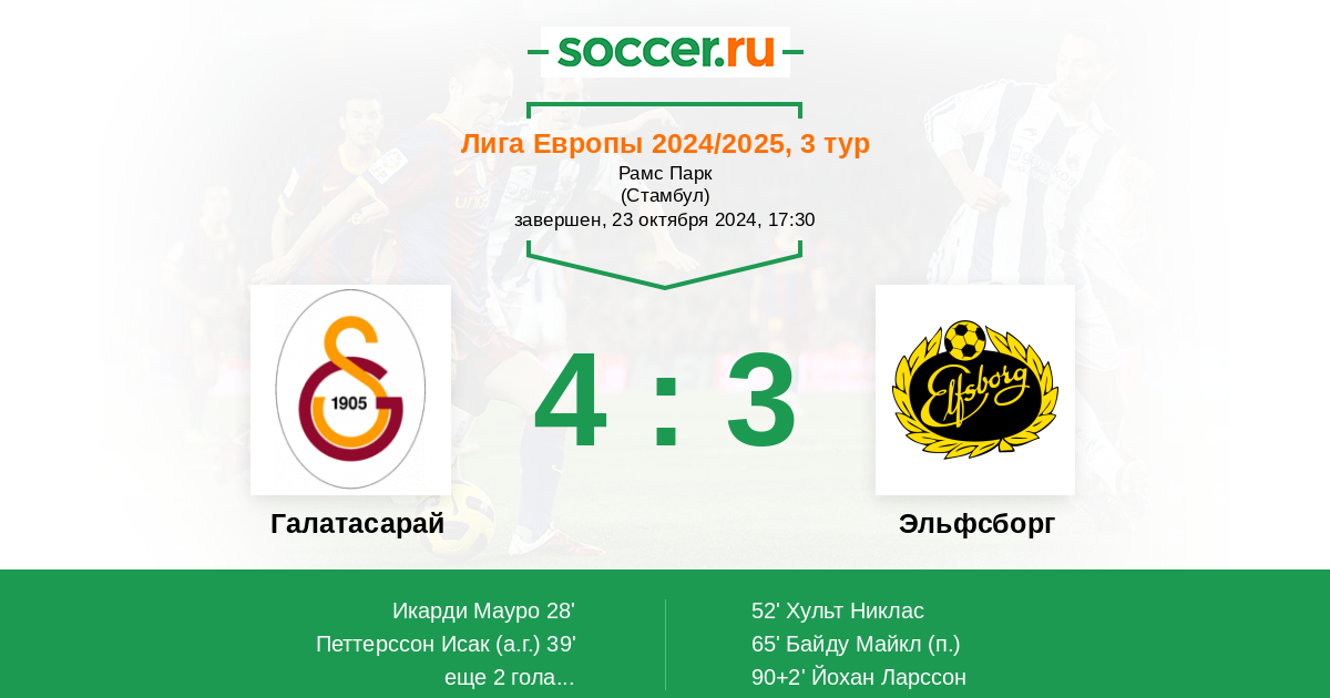 Стамбульская команда выглядит намного сильнее и опытнее соперников, должна на классе одержать победу на своём поле над Эльфсборгом и вряд ли позволит гостевому коллективу избежать как минимум одного пропущенного гола в первом тайме