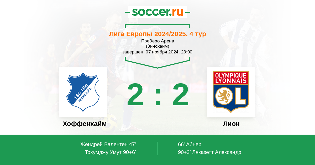 Протокол матча Хоффенхайм против Лион