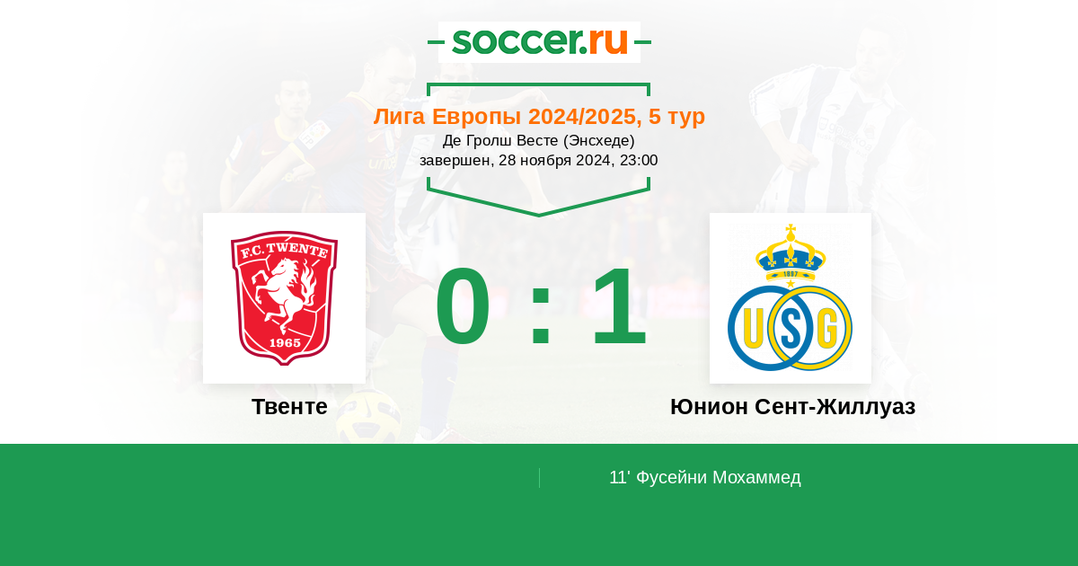 Протокол матча Твенте против Юнион Сент-Жиллуаз