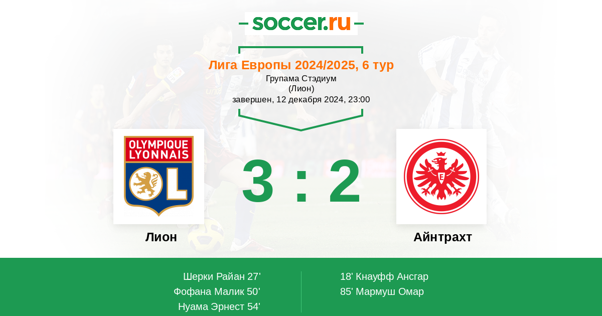 18' (0:1) Кнауфф Ансгар (36) (Экитике Уго (11))