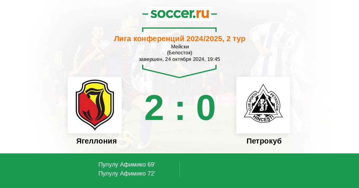 Протокол матча Ягеллония против Петрокуб