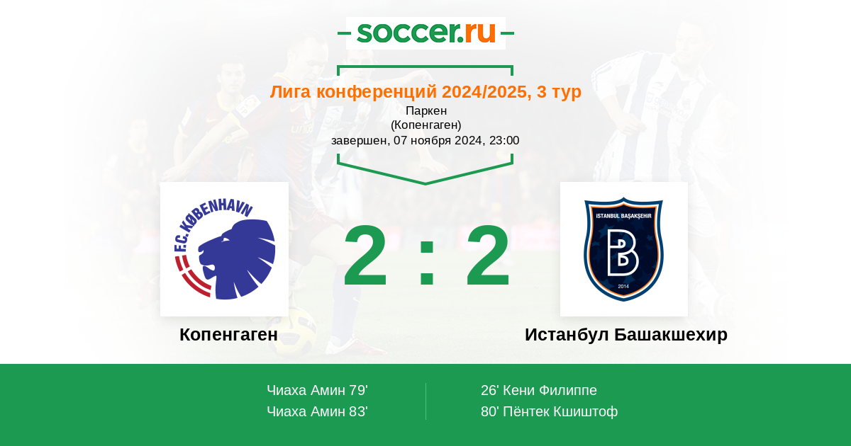 Протокол матча Копенгаген против Истанбул Башакшехир