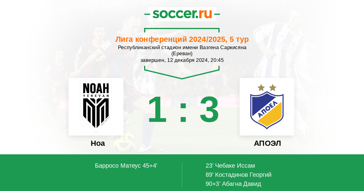 Протокол матча Ноа против АПОЭЛ