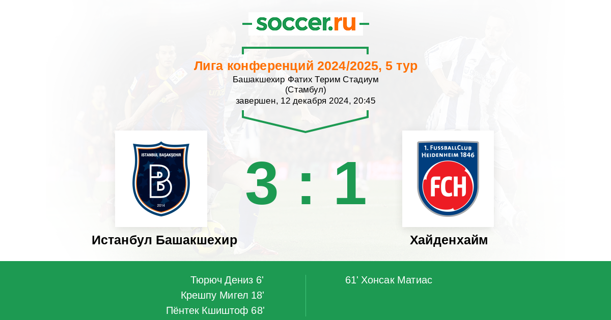 Протокол матча Истанбул Башакшехир против Хайденхайм