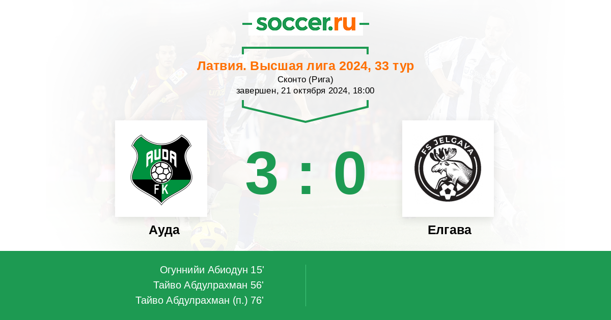 Протокол матча Ауда против Елгава