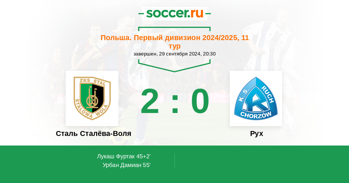 Протокол матча Сталь Сталёва-Воля против Рух