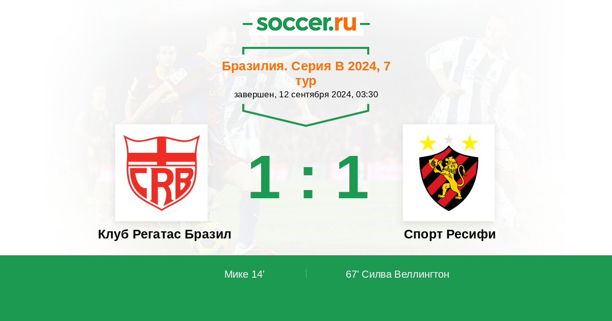 Протокол матча Клуб Регатас Бразил против Спорт Ресифи