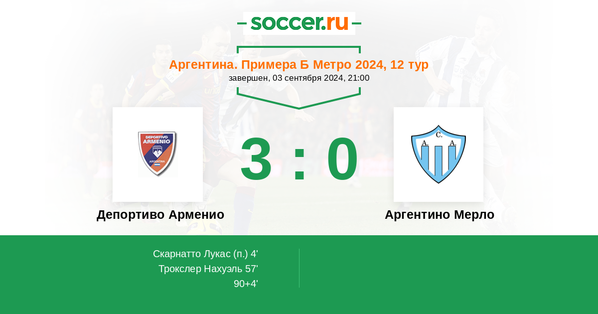 Протокол матча Депортиво Арменио против Аргентино Мерло
