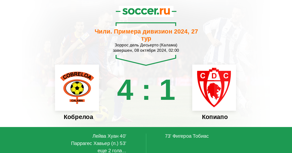 73' (2:1) Фигероа Тобиас (9) (Сото Брайан (32))