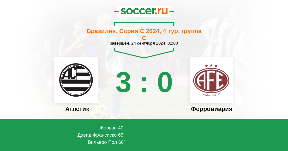 Протокол матча Атлетик против Ферровиария