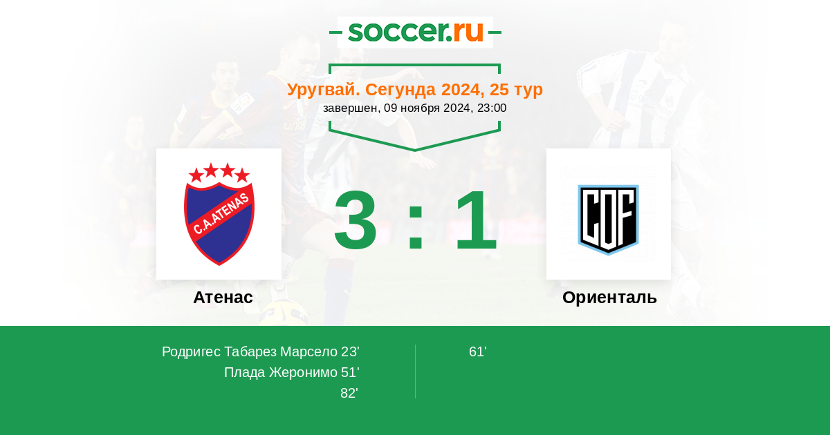 Протокол матча Атенас против Ориенталь