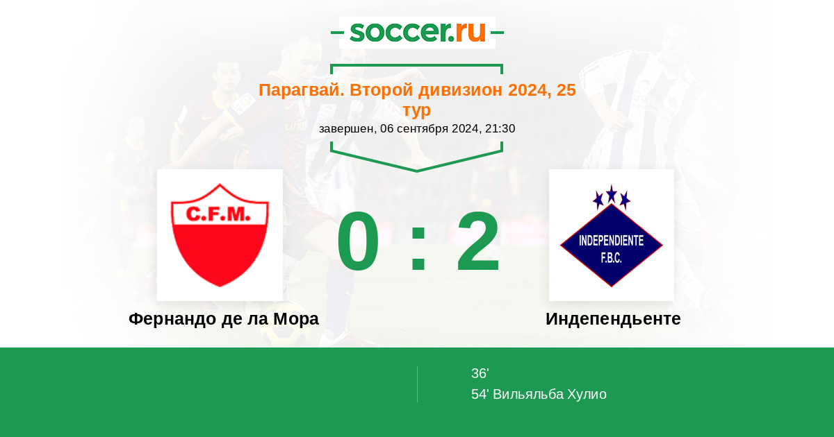 Протокол матча Фернандо де ла Мора против Индепендьенте