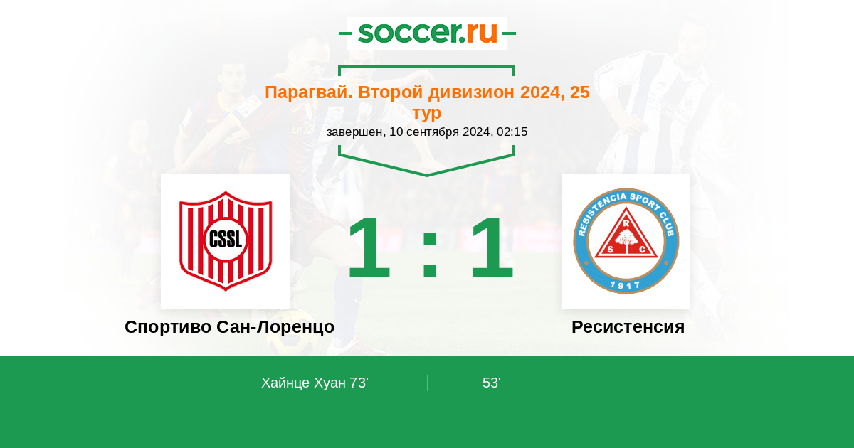 Протокол матча Спортиво Сан-Лоренцо против Ресистенсия