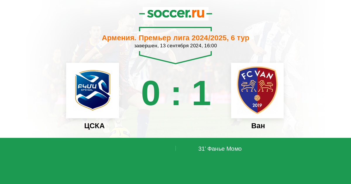 Протокол матча ЦСКА против Ван