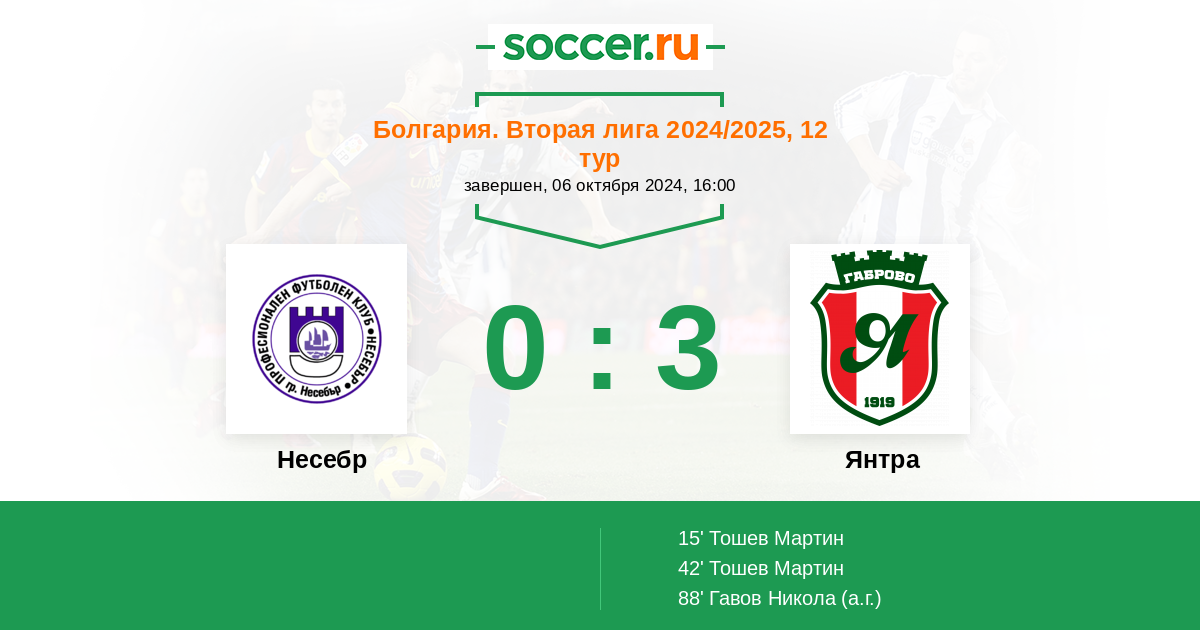 Протокол матча Несебр против Янтра