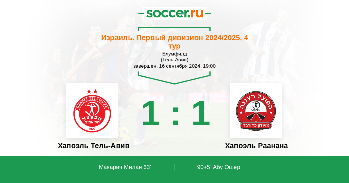 Протокол матча Хапоэль Тель-Авив против Хапоэль Раанана