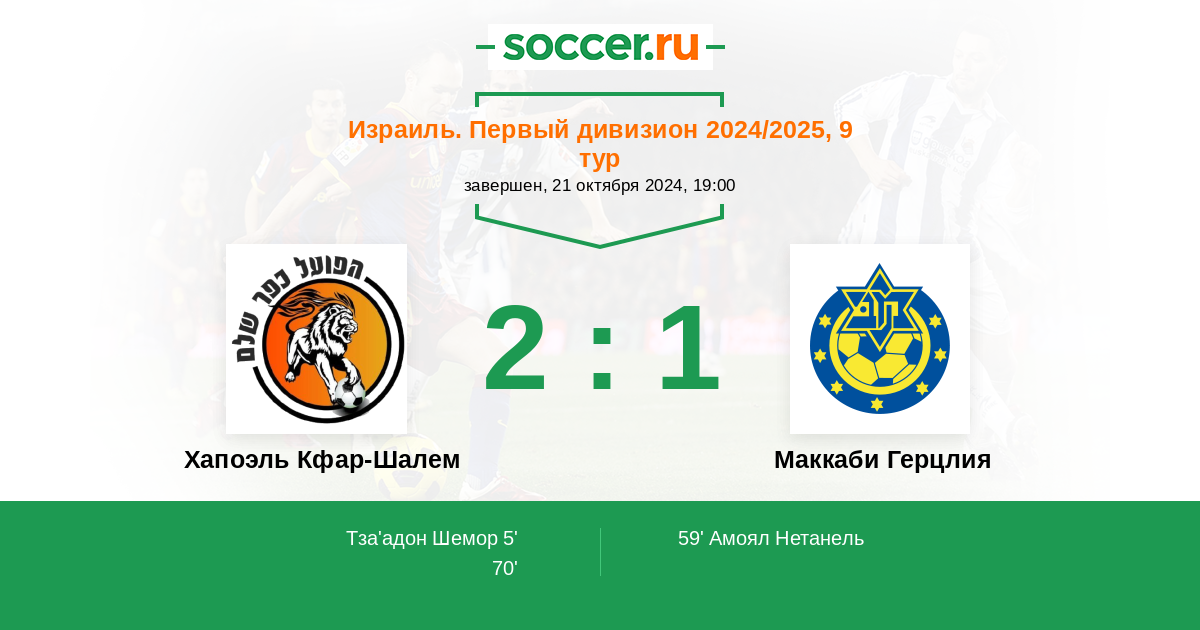 Протокол матча Хапоэль Кфар-Шалем против Маккаби Герцлия