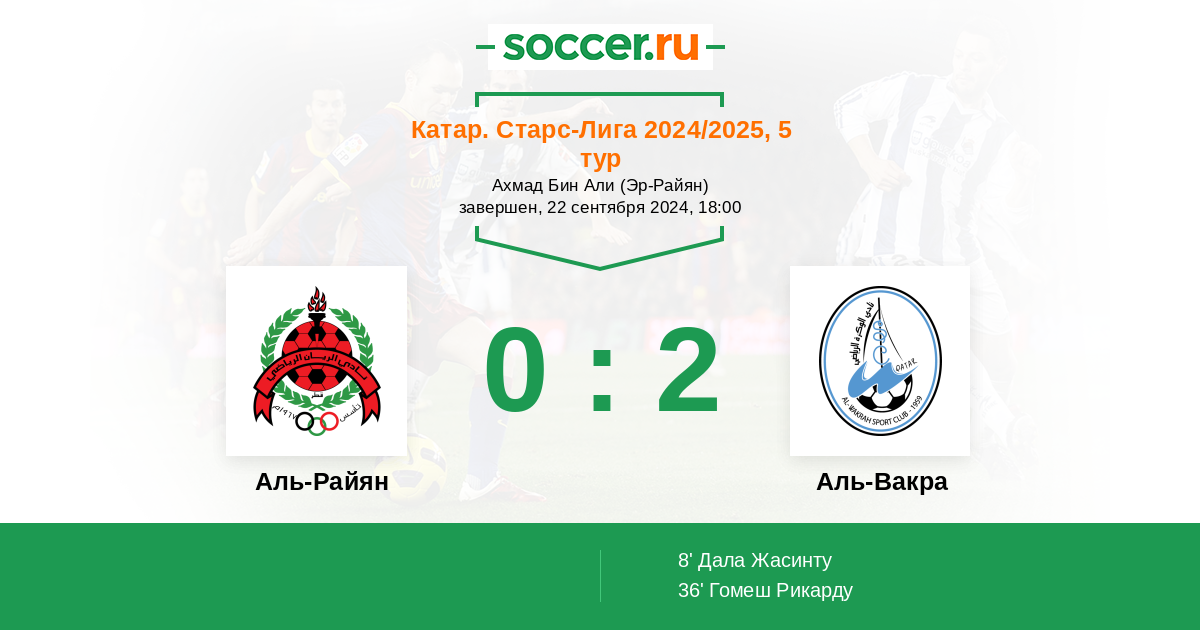 Протокол матча Аль-Райян против Аль-Вакра
