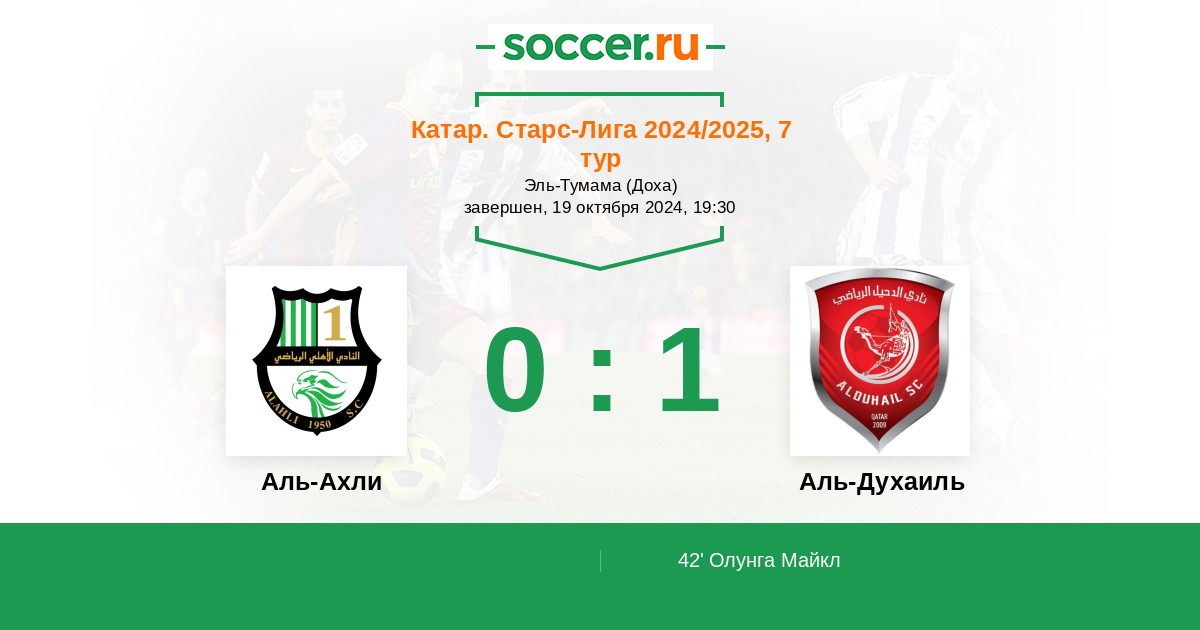 Протокол матча Аль-Ахли против Аль-Духаиль