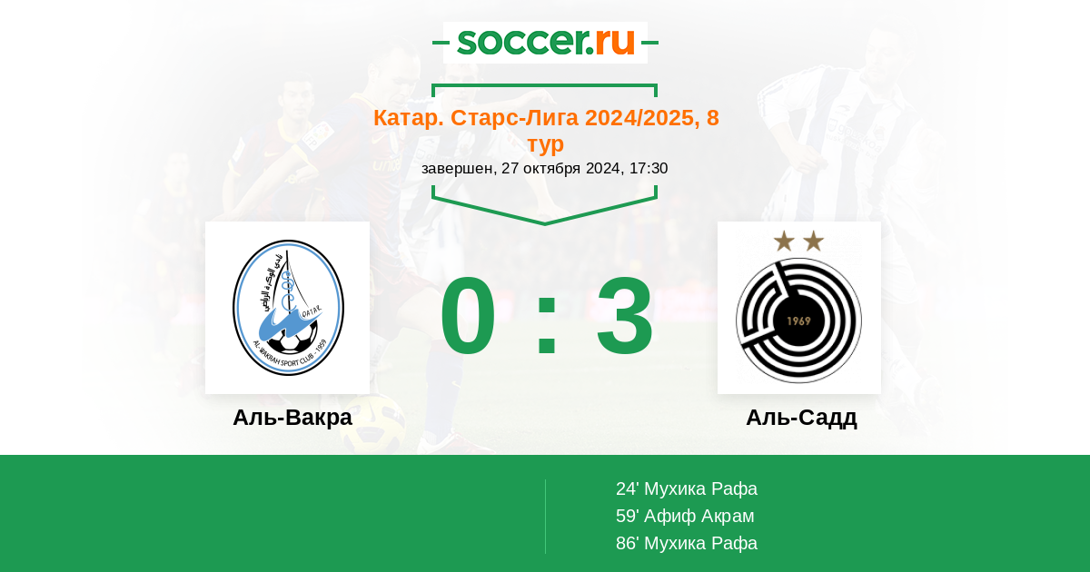 Протокол матча Аль-Вакра против Аль-Садд