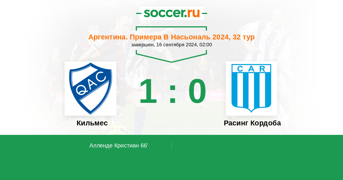 Протокол матча Кильмес против Расинг Кордоба