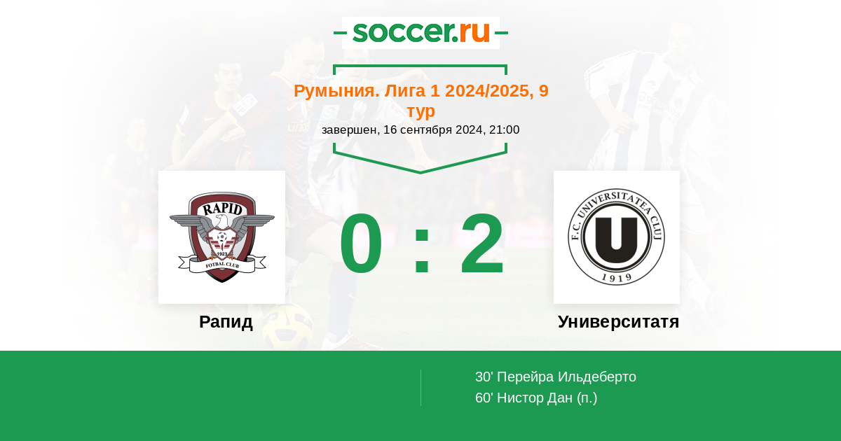 Протокол матча Рапид против Университатя Клуж