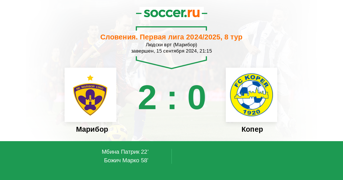 Протокол матча Марибор против Копер