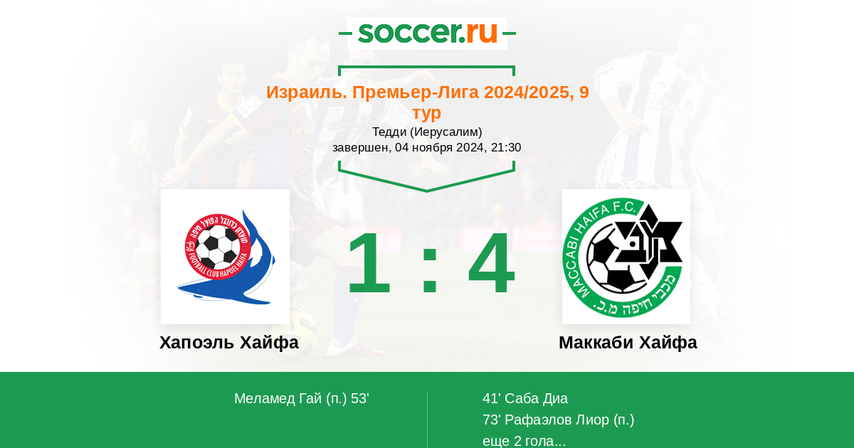 Протокол матча Хапоэль Хайфа против Маккаби Хайфа
