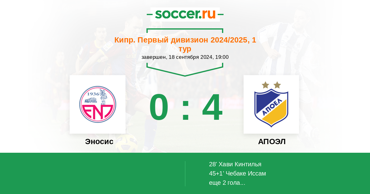 Протокол матча Эносис против АПОЭЛ