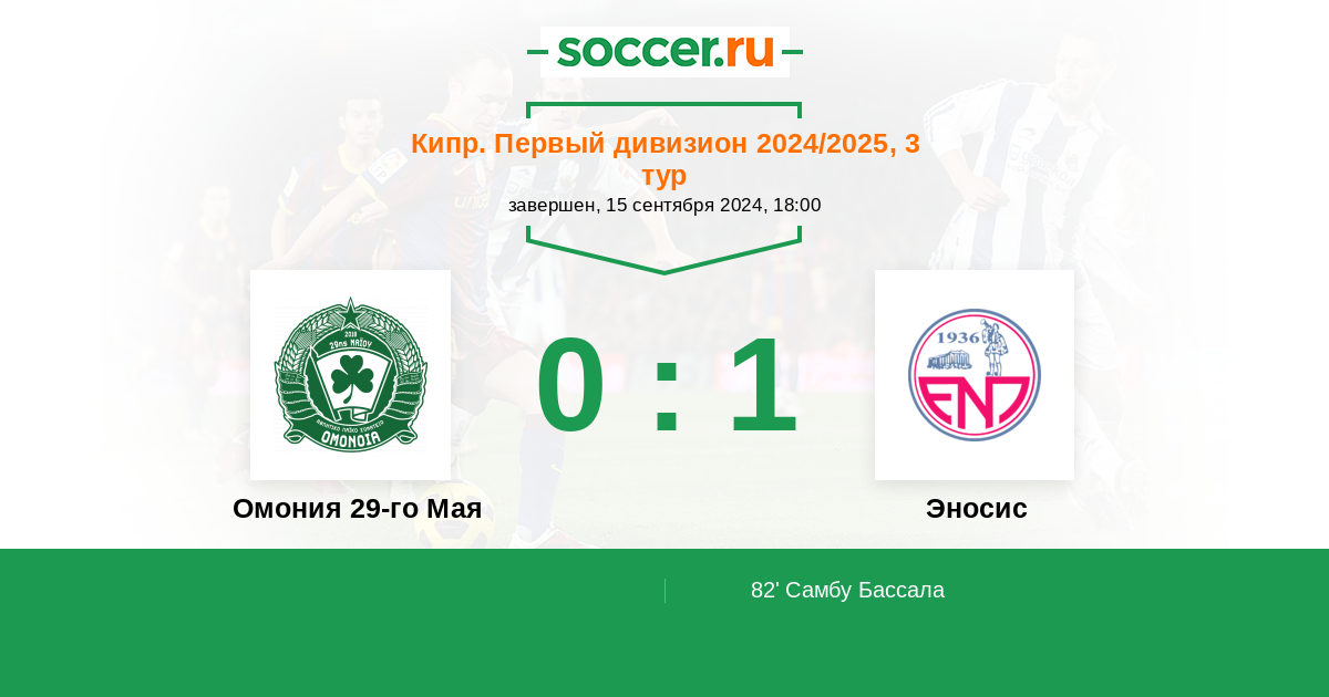 Протокол матча Омония 29-го Мая против Эносис