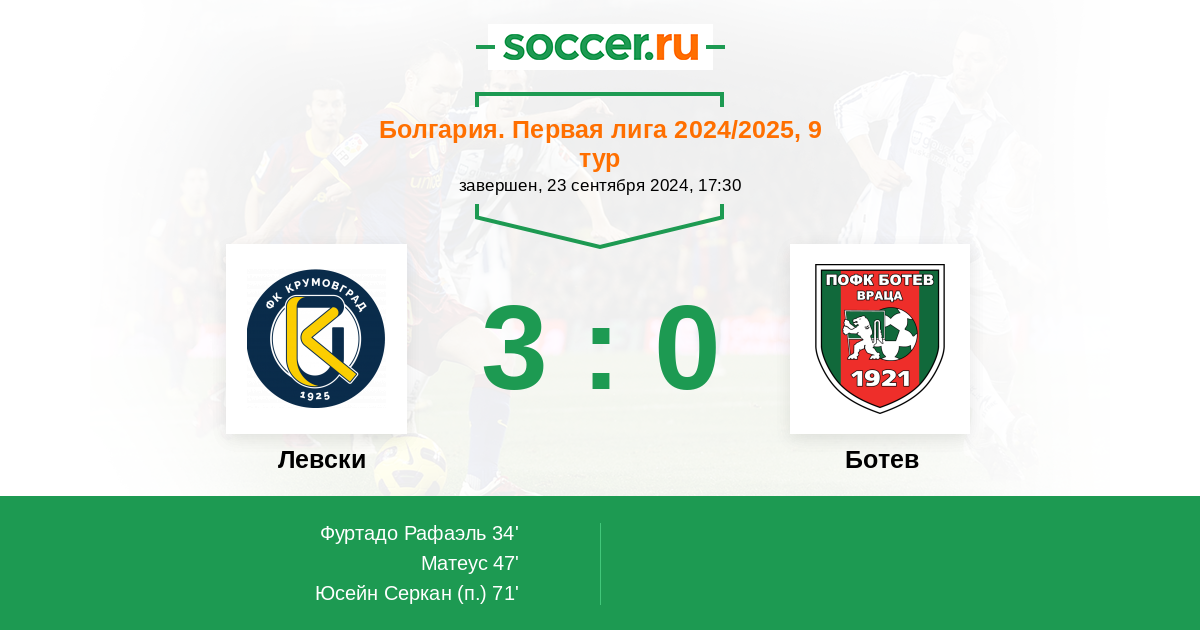 Протокол матча Левски против Ботев