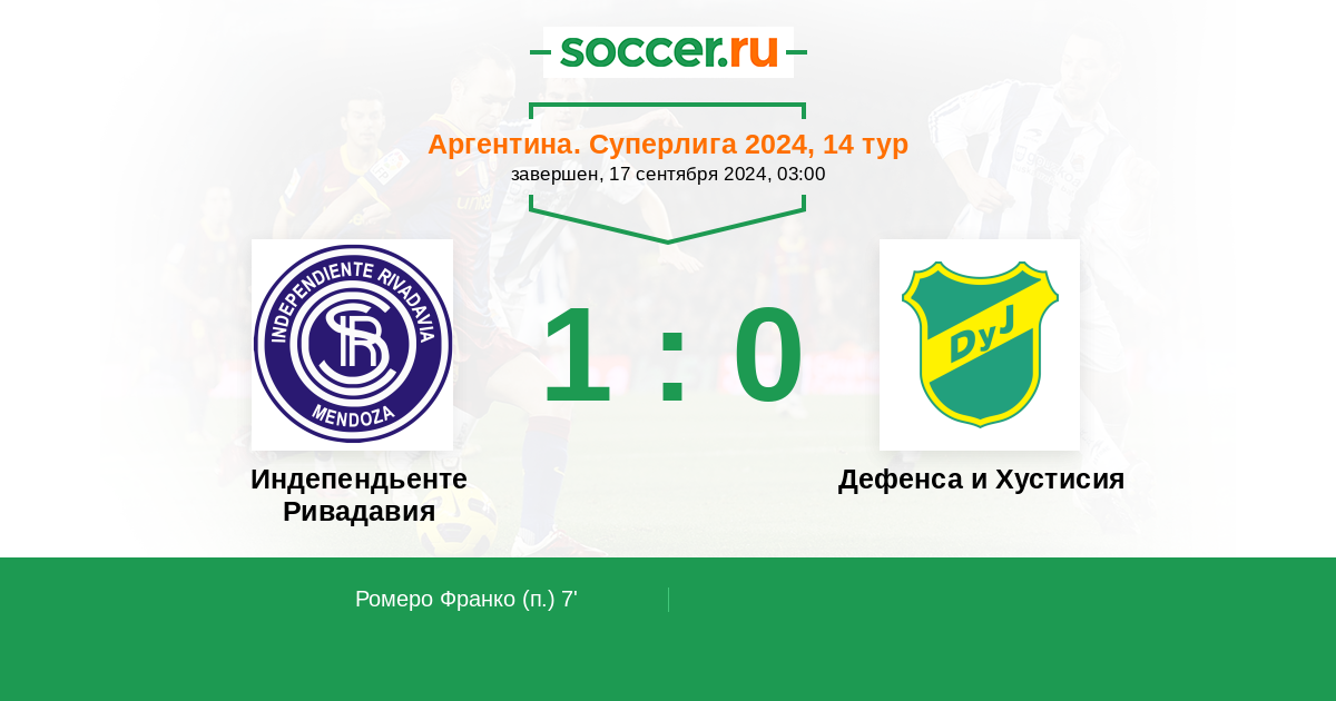 Протокол матча Индепендьенте Ривадавия против Дефенса и Хустисия