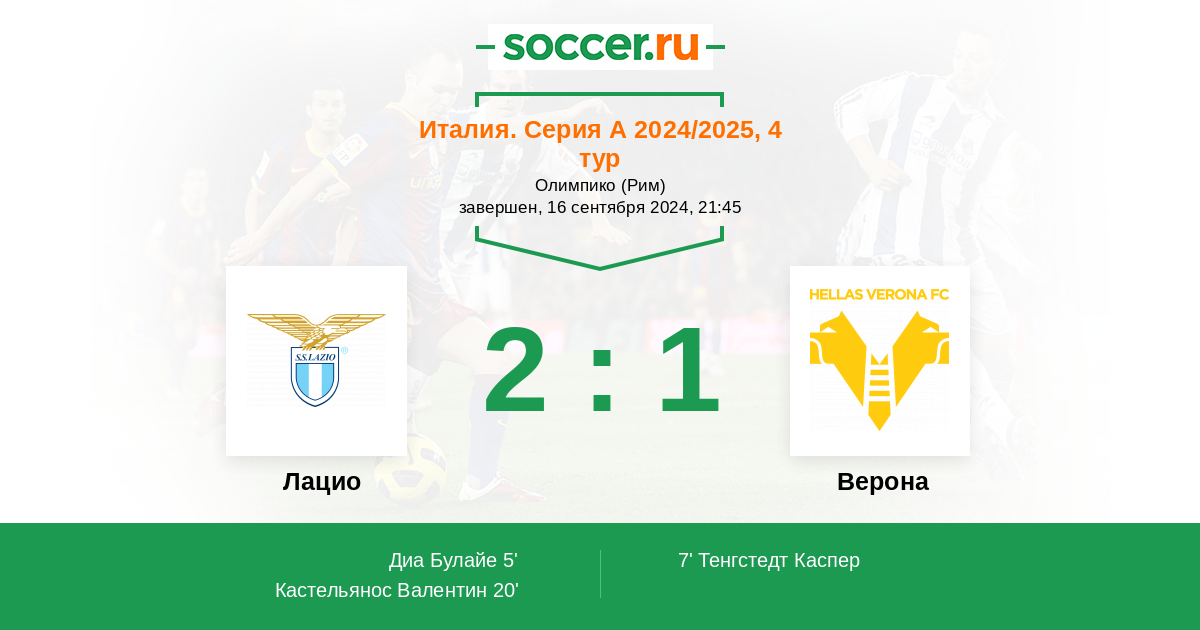 Современный Лацио пребывает в процессе масштабной кадровой перестройки. Это не отменяет высокие турнирные задачи перед римским клубом, который метит в еврокубковую зону. Подопечные Марко Барони пока идут на промежуточном 11 месте в турнирной таблице. Верона стартовала в Серии А успешнее столичного коллектива, но все достижения гостевого коллектива связаны с комфортным календарем, включая домашнюю игру против кризисного Наполи. В этом матче Лацио сможет раскрыть свой атакующий потенциал. Жду забитых голов от Кастельяноса и победы хозяев арены.