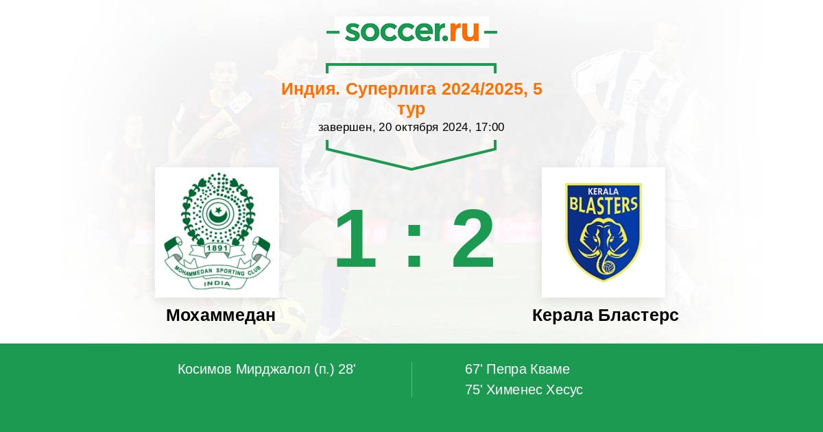 Протокол матча Мохаммедан против Керала Бластерс