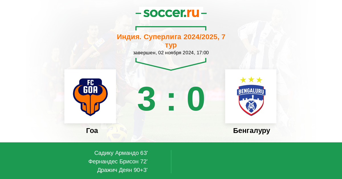 Протокол матча Гоа против Бенгалуру